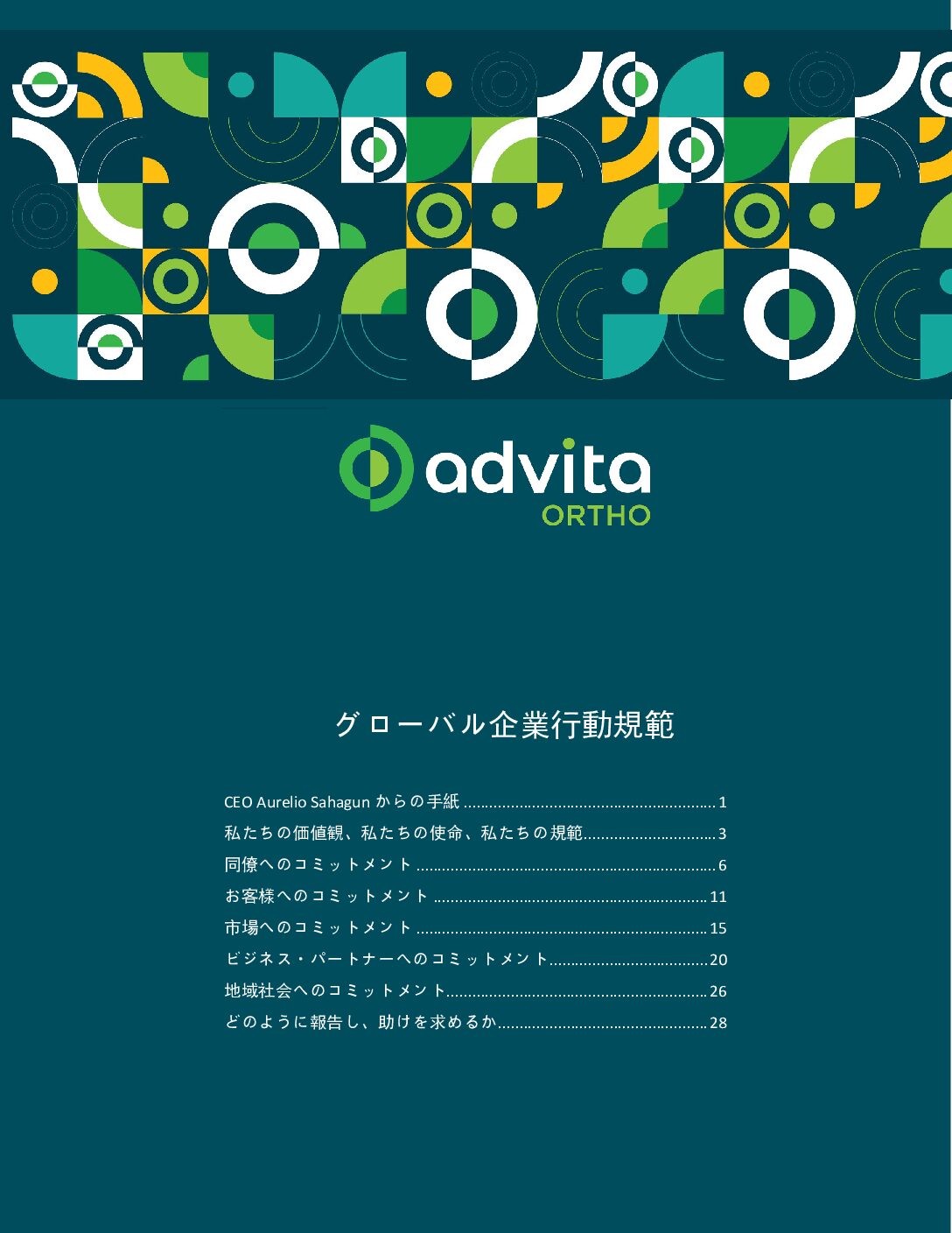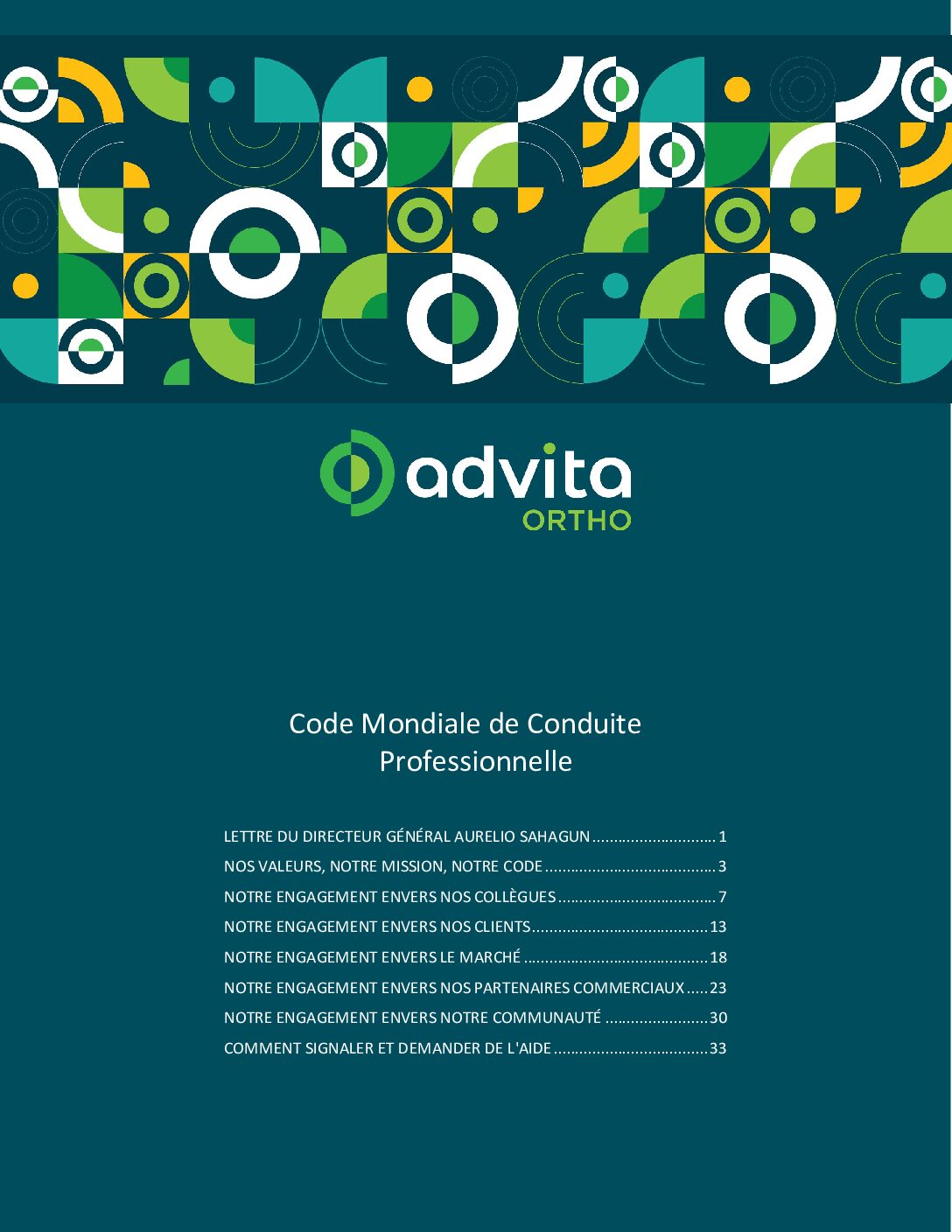 Seit der Gründung haben sich Advita Ortho und seine Mitarbeiter in allen Geschäftsbeziehungen zu hohen Standards ethischen Verhaltens verpflichtet.