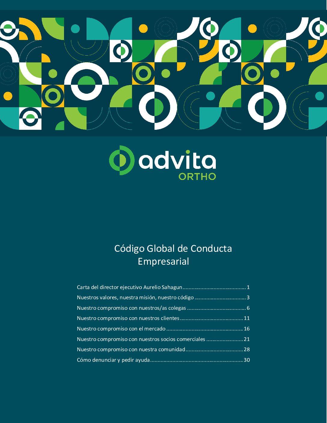 Dieser Globale Kodex für Verhalten und Ethik im Geschäftsleben erweitert unsere Grundwerte und bietet eine Leitlinie, wenn wir Geschäfte im Namen von Advita tätigen. Zusätzlich zum globalen Kodex enthält unser Compliance- und Ethikplan detaillierte Richtlinien und Verfahren zur Umsetzung dieses Verhaltenskodex und zur Regelung unserer Geschäftsprozesse. Jährlich bestätigen alle Mitarbeiter ihre Verpflichtung zur Einhaltung der im Global Code festgelegten Standards und Verantwortlichkeiten. Dieser Globale Kodex ist in verschiedenen Sprachen, darunter auch Englisch, verfügbar.