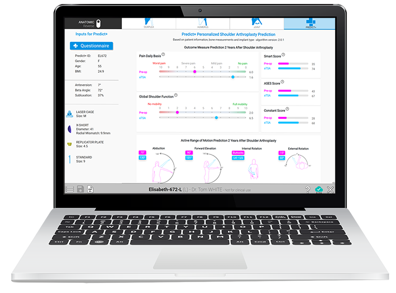 Predict+ ist das weltweit erste klinische Entscheidungsunterstützungstool, das prädiktive Analysen und Algorithmen des maschinellen Lernens nutzt, um patientenspezifische Ergebnisprognosen für Schulterendoprothesen zu liefern. Predict+ unterstützt bei der Patientenauswahl, der Implantatauswahl sowie der Optimierung von Patientenerfahrung und -zufriedenheit. Es wird den präoperativen Beratungsvorgang revolutionieren, indem zusätzliche evidenzbasierte Therapieentscheidungen eine genauere Festlegung der Patientenerwartungen bei Schulterendoprothesen ermöglichen.