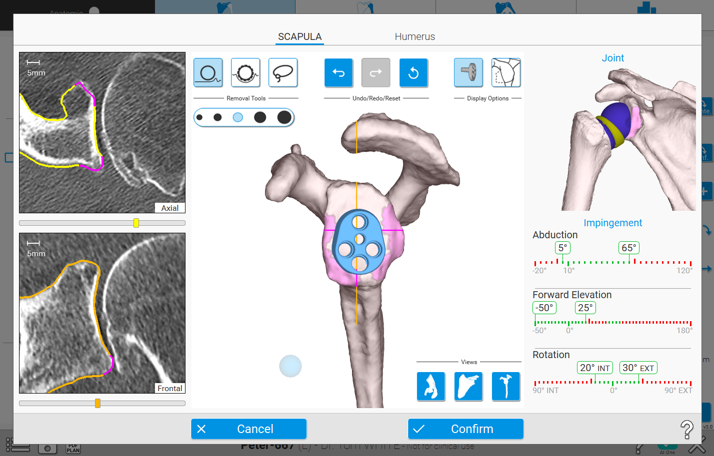 Von CT bis zur 3D-Rekonstruktion in wenigen Minuten. Eine 3D-Rekonstruktion der Schulterblatts (Scapula) und des Oberarms (Humerus) kann innerhalb weniger Minuten für die präoperative Planung erstellt und für die intraoperative Navigation validiert werden.